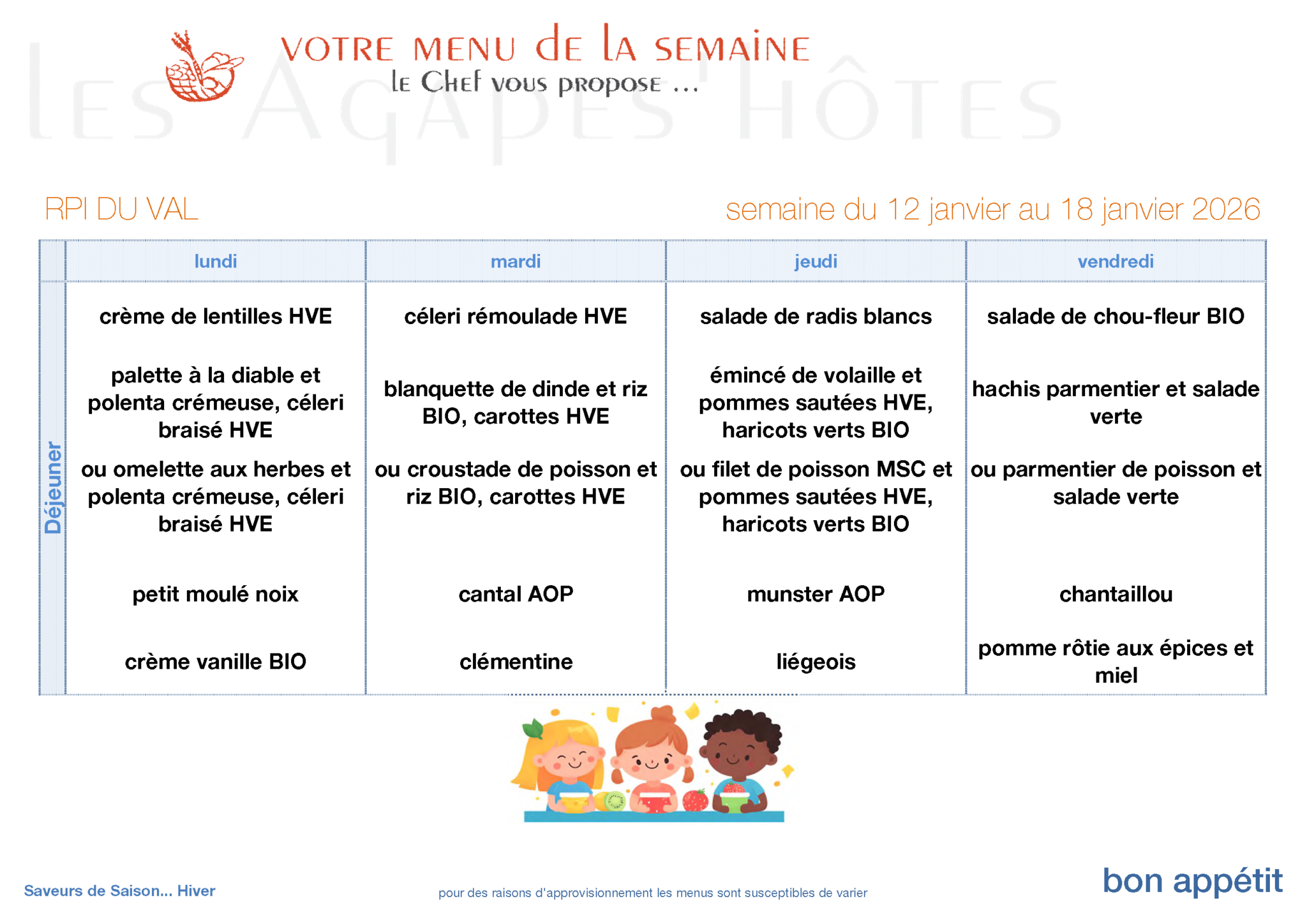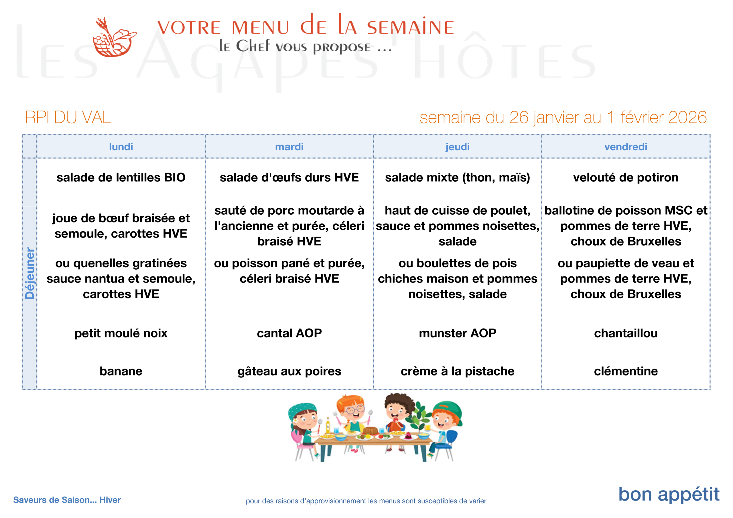 Menus restauration scolaire 12 novembre 2025 Semaine 2 Semaine 3 Semaine 4 Semaine 5 Semaine 6 Semaine 7 View all posts by dgirard